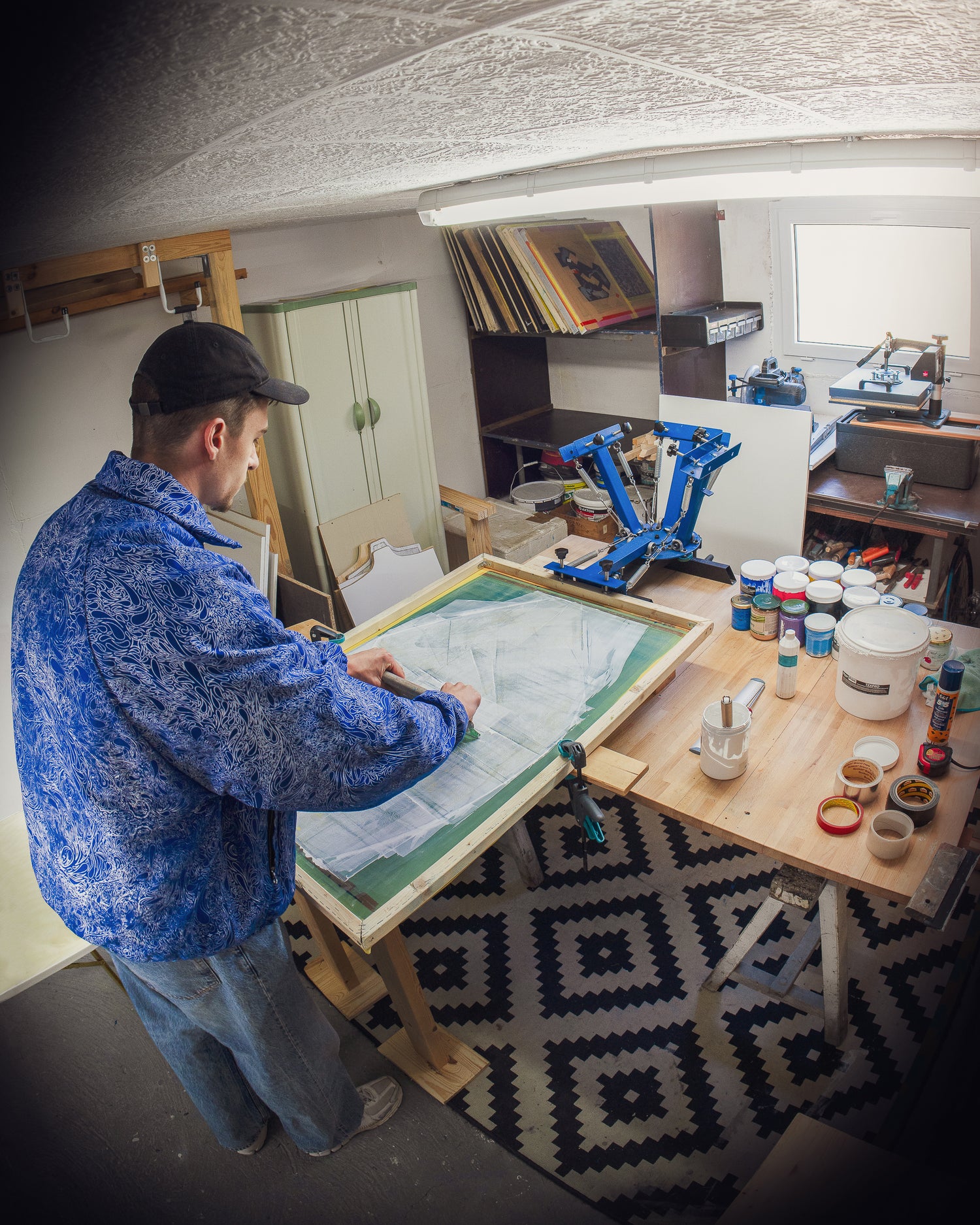 La technique d’impression des vêtements est la sérigraphie, qui consiste à déposer une couche d’encre par l’intermédiaire de « cadres pochoirs ».